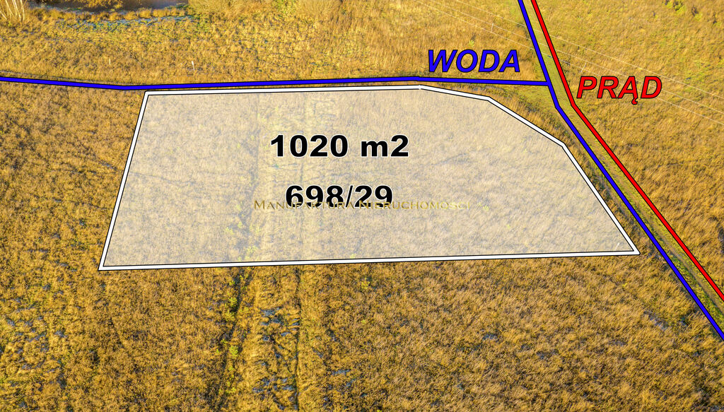 - Media: Prąd w drodze i woda na działce.